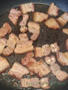 • Couper des morceaux de lard fumé, et les faire revenir dans une poêle.