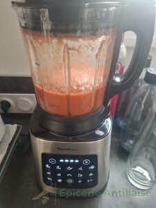 • Mixer le tout. Si votre mixer le permet faites cuir directement en mode sauce chaude, sinon faites cuire votre sauce 20 minutes dans une casserole.