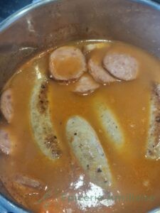 • Ajouter les saucisse dans votre récipient, et laisser mijoter 2 heures à feu doux.